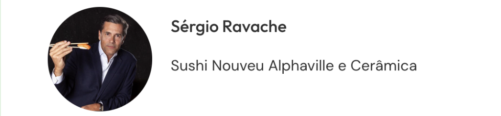 Meu nome é Sérgio Ravache e sou sócio-proprietário do Restaurante Sushi Nouveau. Somos clientes da APSA há mais de quatro anos, e estamos com ela não só pela expertise da Ana Paula, mas também pelos constantes treinamentos que ela e a equipe dela trazem para nós e nossos colaboradores. A tranquilidade que ela traz não é só para nossa equipe, mas também para os nossos clientes. Meu conselho é que você chame a Ana Paula e converse com ela para entender melhor as necessidades do seu restaurante e de como a APSA pode te ajudar.
