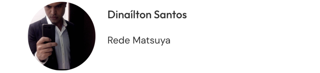Sou Dinaílton e trabalho em parceria com a Ana há dezesseis anos, desde o início dela na Rede Matsuya, e gostaria de dizer que é um prazer enorme fazer parte dessa história. Agradeço pelo carinho, pelo respeito, pela parceria, sou muito feliz em ter a Ana e a equipe dela aqui conosco. Além de admirá-la como pessoa, como amiga, a Ana é uma profissional extraordinária.
